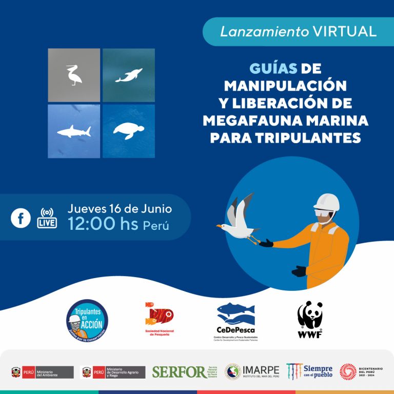 Estimado/a: Queremos invitarlo al Lanzamiento Virtual de las Guías de Manipulación y Liberación de Megafauna Marina para Tripulantes, cuya información compartimos a continuación: