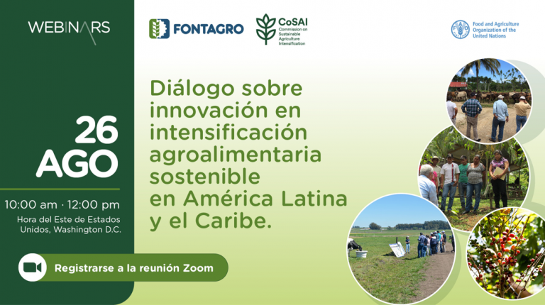 Conferencia online – CoSAI, FONTAGRO y FAO/RLC Diálogo sobre intensificación agropecuaria sostenible en América Latina JUEVES 26 DE AGOSTO, 2021 – 10.00-12.00 (Washington DC/Santiago)