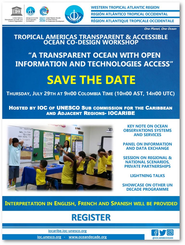 INVITATION: UN DECADE WTA CO-DESIGN WORKSHOP A TRANSPARENT AND ACCESSIBLE OCEAN “A TRANSPARENT OCEAN WITH OPEN INFORMATION AND TECHNOLOGIES ACCESS” – Thursday, July 29th at 9h00 Colombia Time (10h00 AST, 14h00 UTC)