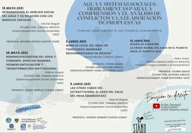 Curso “Agua y sistemas sociales. Herramientas para la comprensión y el análisis de conflictos y la elaboración de propuestas. Curso de acercamiento al agua desde el análisis social”. Online, 18 Mayo-10 Junio 2021